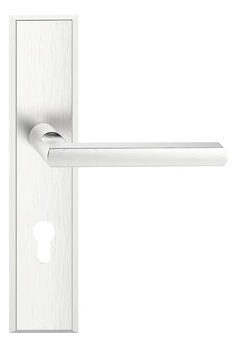 Klamka FIESTA długi szyld 72 mm na wkładkę PZ, nikiel satyna