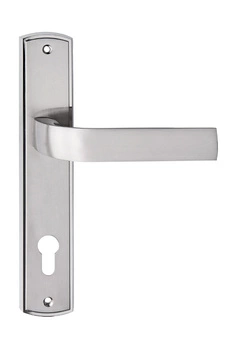 Klamka FIESTA długi szyld 72 mm na wkładkę PZ, nikiel satyna